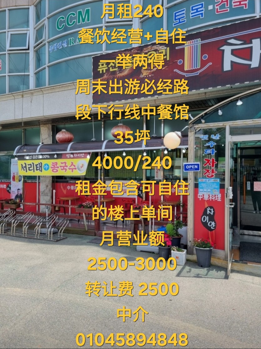 月租240万韩元,餐饮经营+自住一举两得?周末出游必经路段下行线旺铺中餐馆