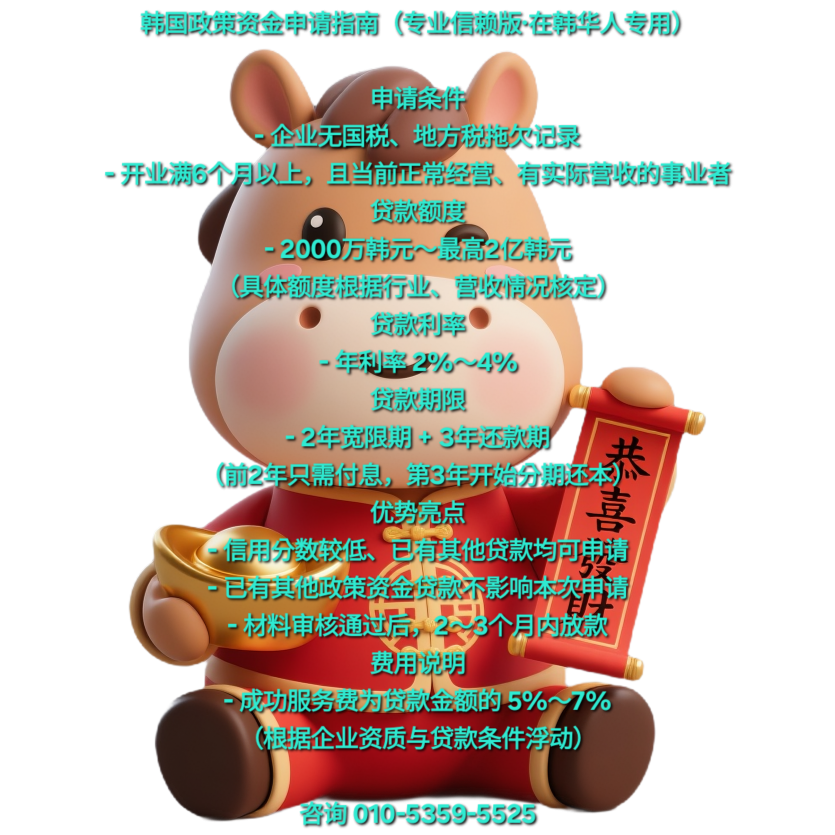 韩国政策资金贷款申请指南(专业信赖版·在韩华人专用)