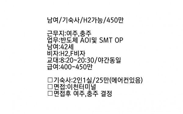 남여 55세 이하 합법비자 2교대 5일근무