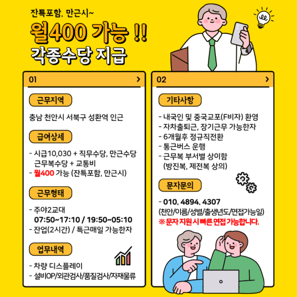 - 월400가능(잔특포함,만근시)