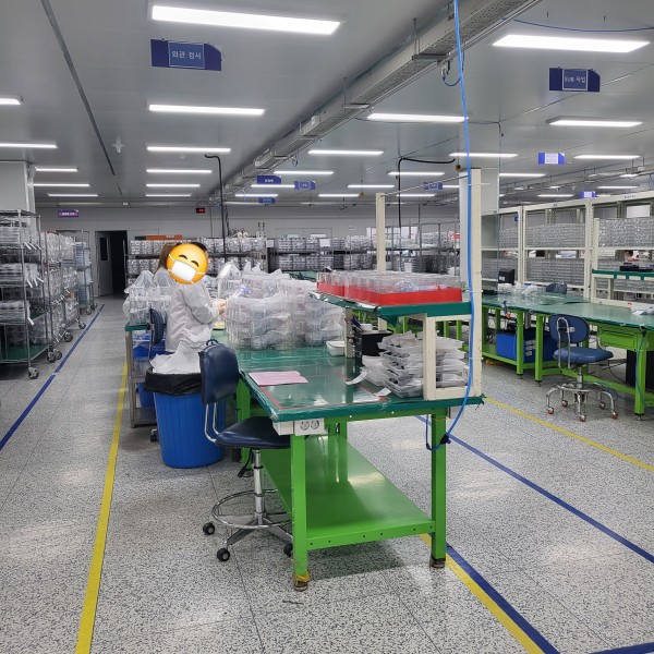 - 조립 : 작업 테이블에 개인별 트레이 가져와서 개별 작업 진행 ( 좌식 )