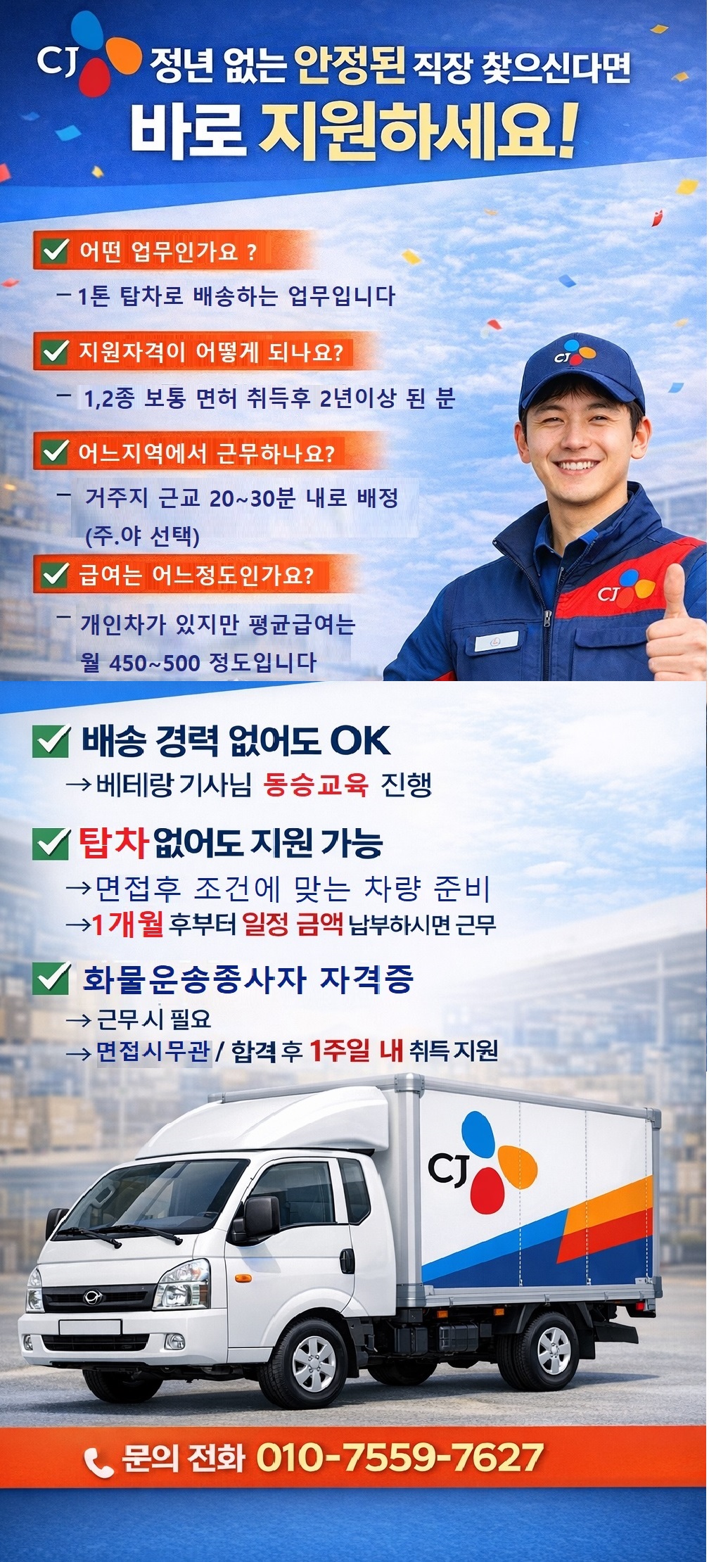 배송으로 안정 찾으실 기사님 채용중/월 500이상
