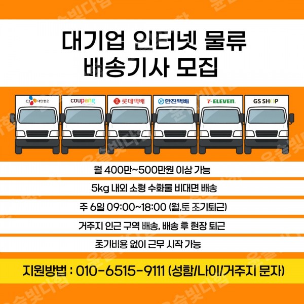 양식: 이름 / 거주지 / 운전경력 / 희망지역을 문자로 남기시면 됩니다.
