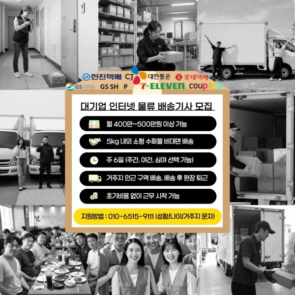 급여 조건: 월 450만원~월500만원 이상 (물량 소화량이 많아지면 +@ 급여 가능).