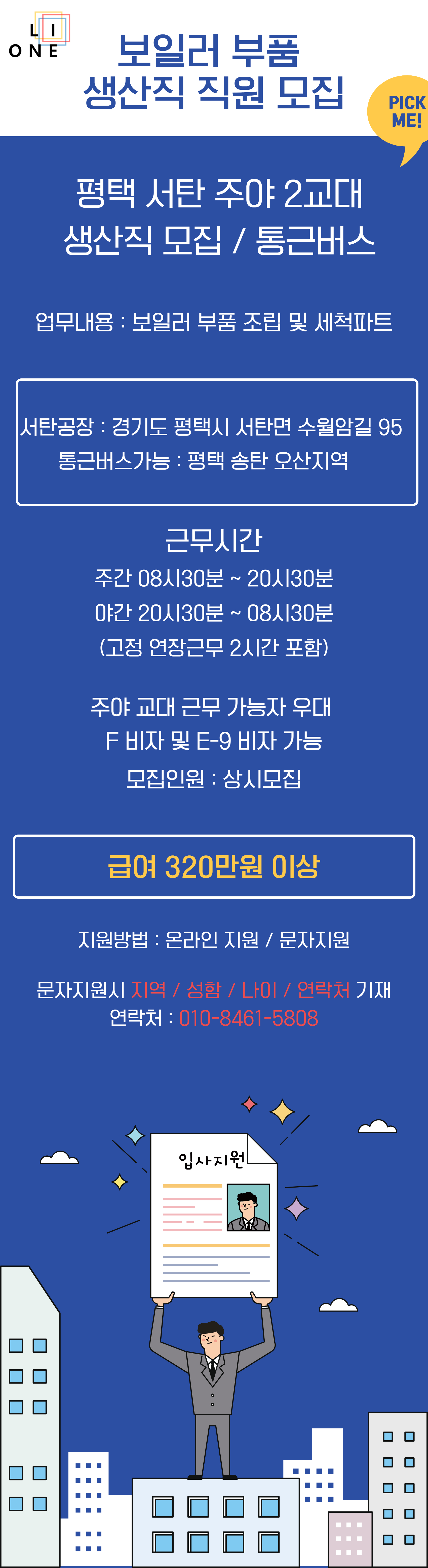 [서탄] 보일러부품 생산직 주야2교대 / 통근버스