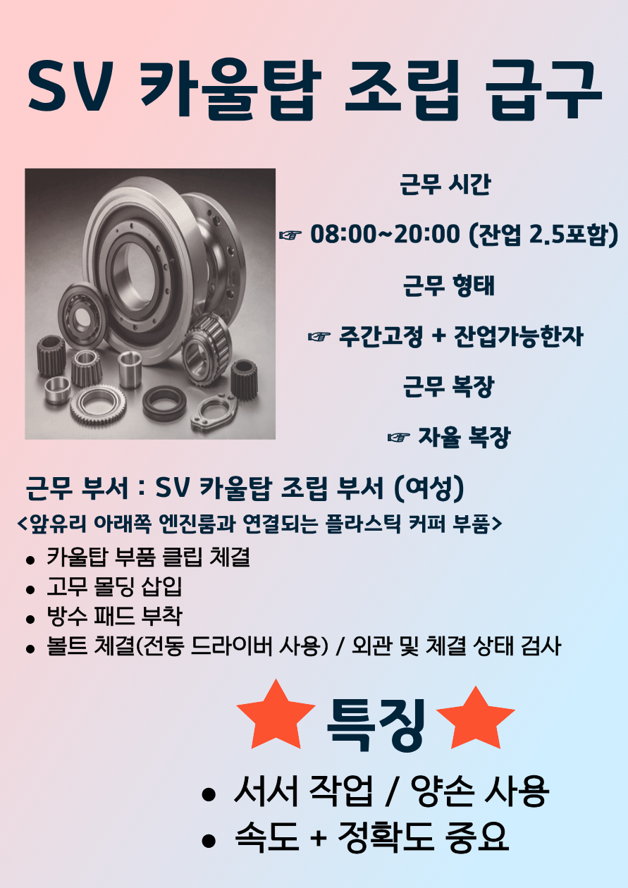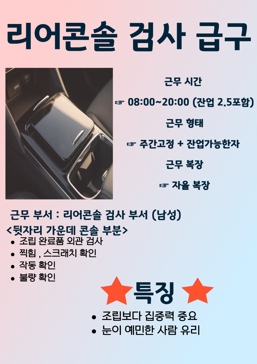 현대기아 협력사 남여 직원 모집