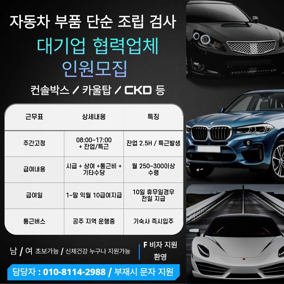 우대사항초보가능, 즉시출근, 내국인우대, 인근거주자, 자차출근