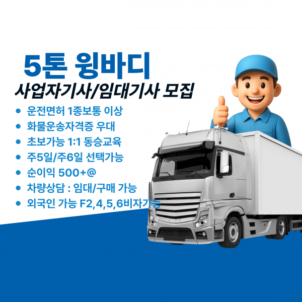 주요업무5톤~25톤 윙바디 차량 운전기사