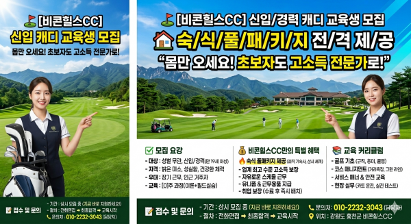 ⛳[비콘힐스CC] 몸만 오세요! 숙식 무료 제공 + 고소득 캐디 교육생 모집