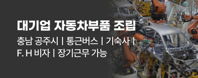 [기아자동차 1차] 월320만 / 자동차 부품 생산 / 주간고정 / 조립 / 진행 / 통근 운행 / FH비자 가능