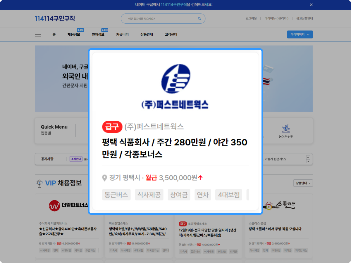 네이버 구글에서 114114구인구직을 검색해보세요!